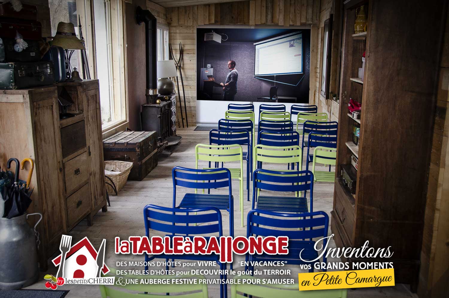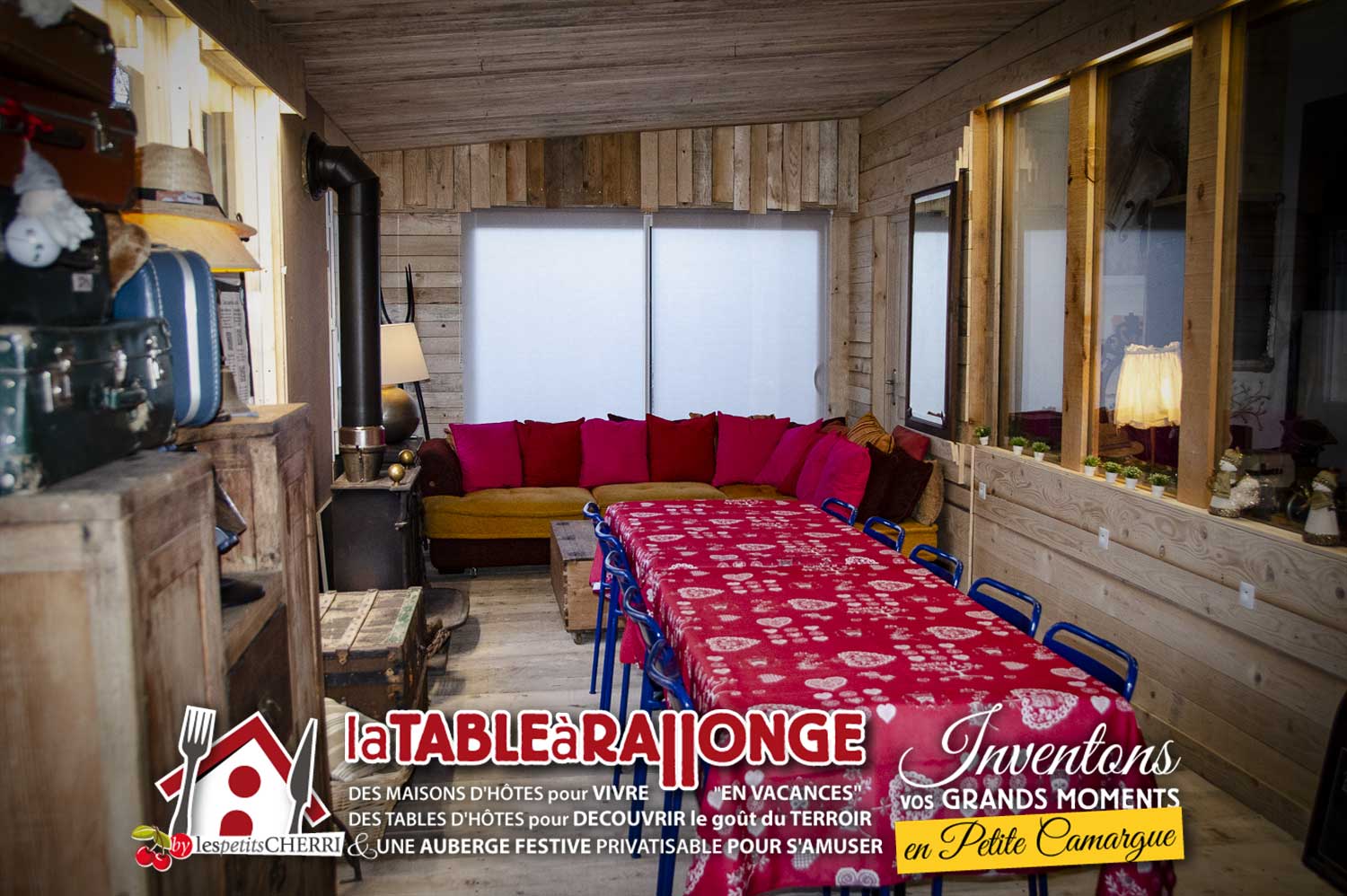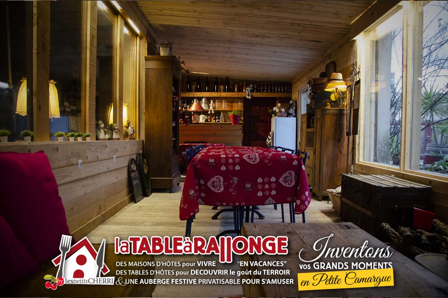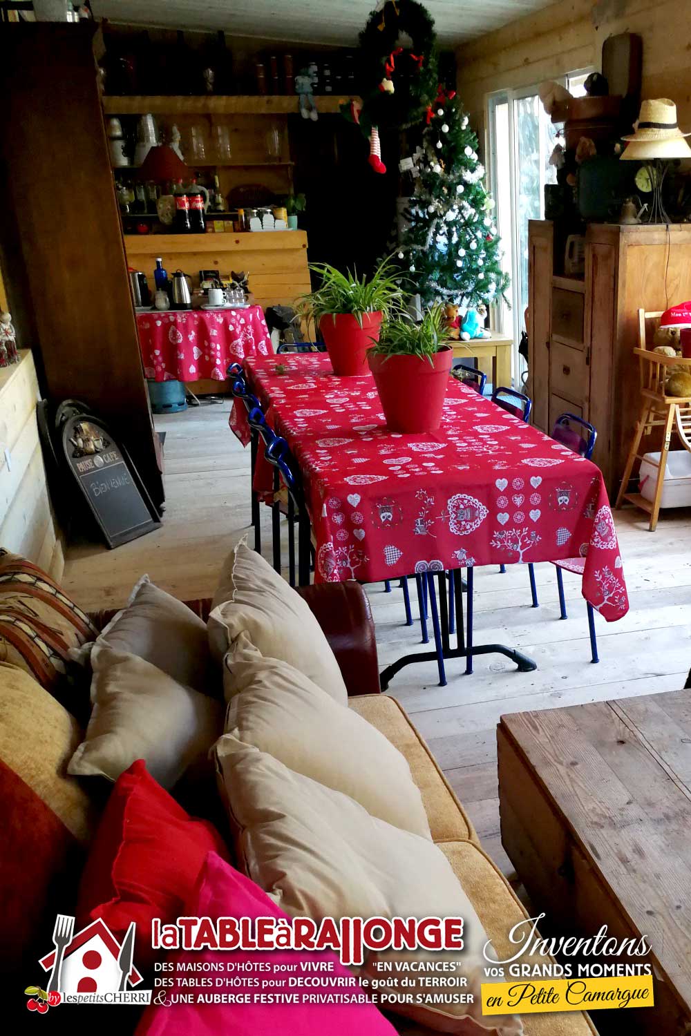 Comme dans LA TAVERNE, on peut s'y retrouver pour manger, se reposer autour d'une cheminée l'hiver ou pour la sieste l'été, profiter d'animations diverses, boire des coups, regarder un film sur très grand écran... mais en plus petits groupes!
