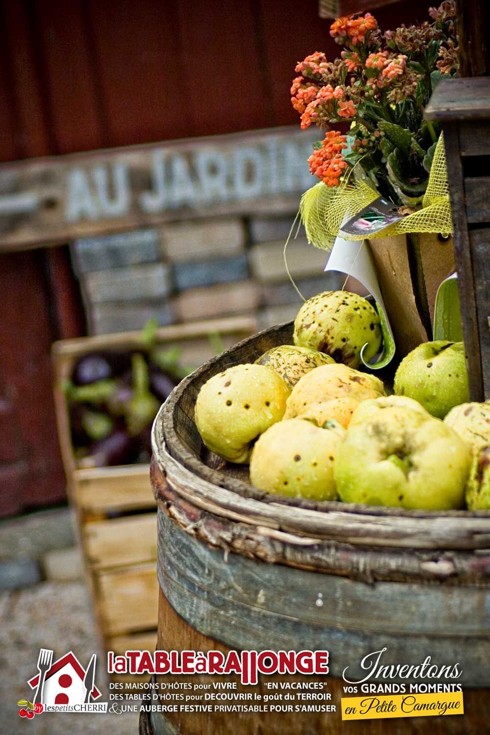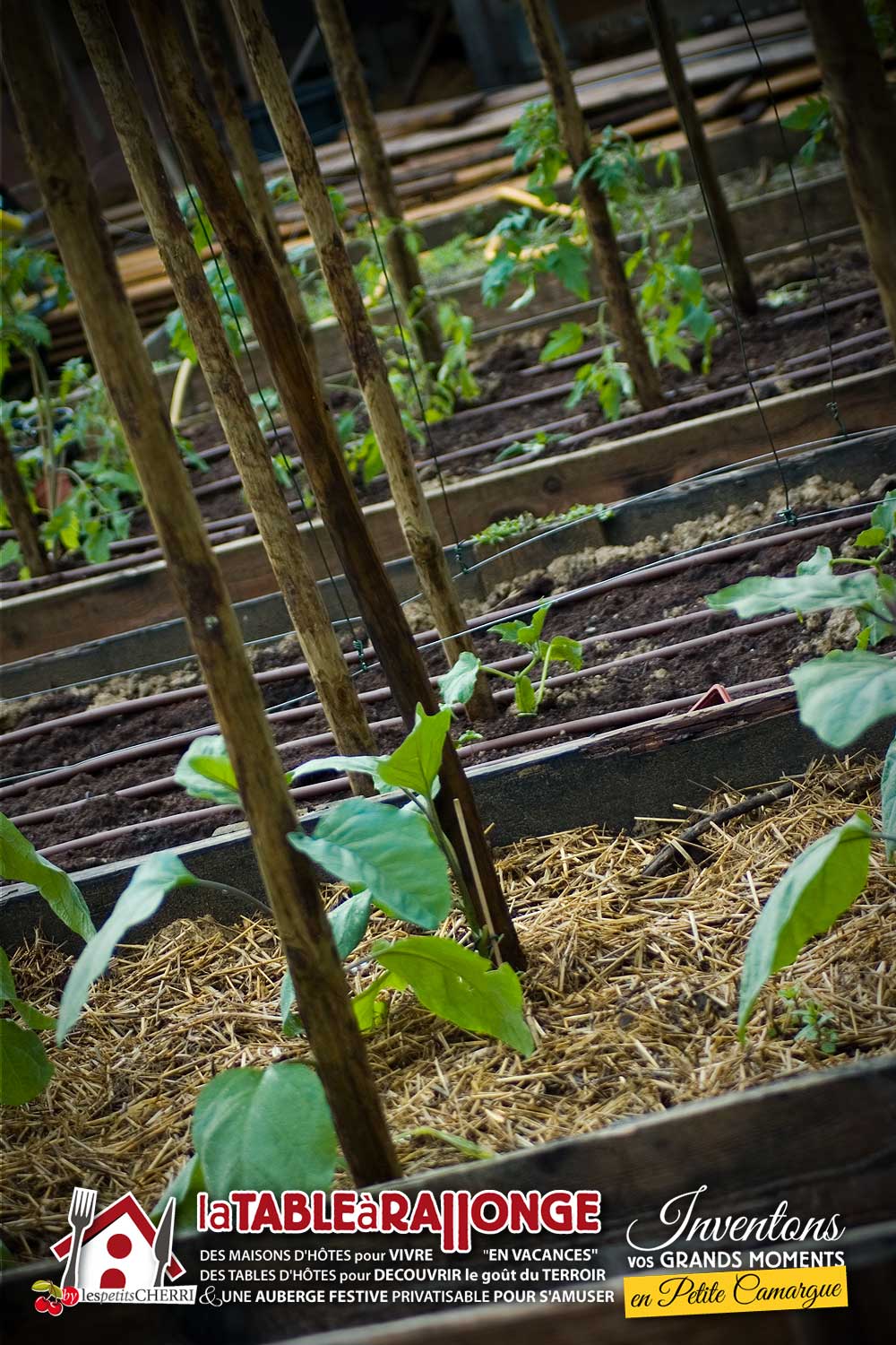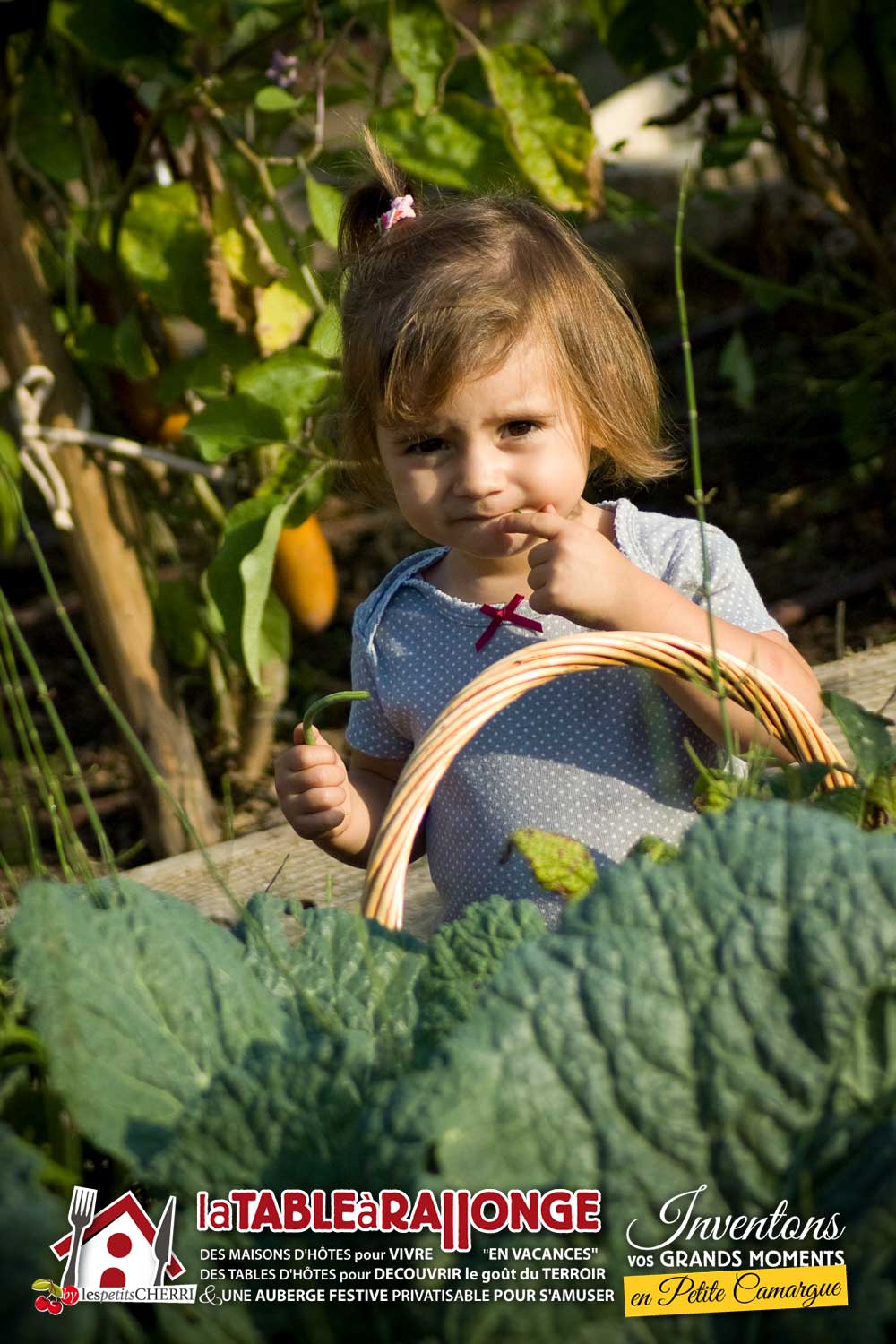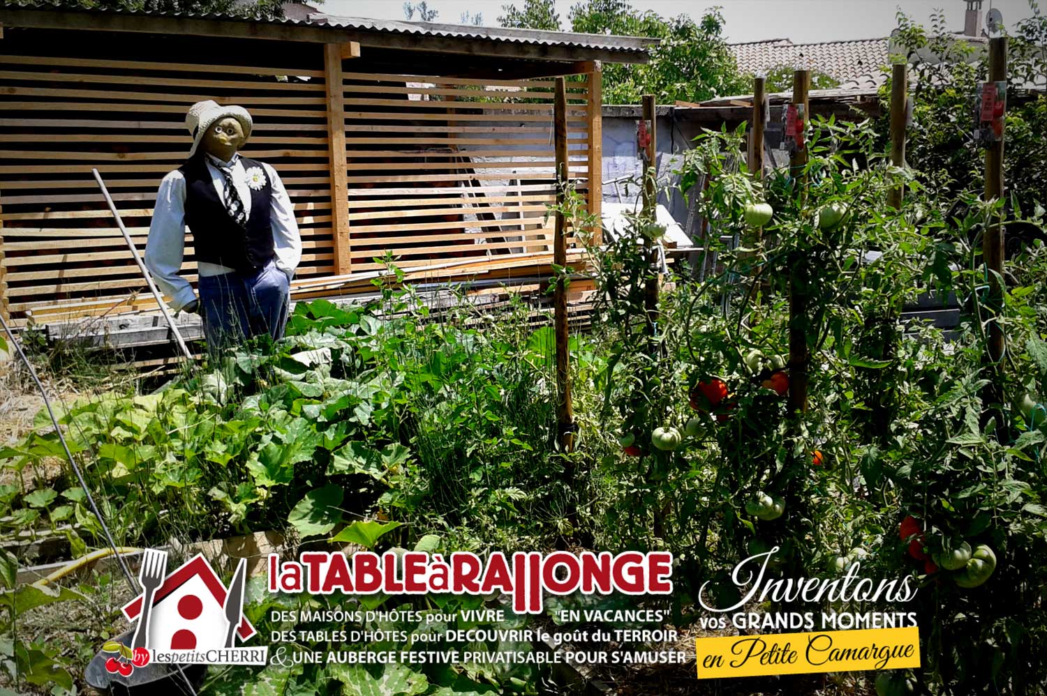 Tout à la fois, jardin d'agrément, potager du chef, basse-cour... il était impossible d'imaginer une auberge d'hôtes sans un "petit" espace de nature, un coin où les "gratteurs.euses de terre" peuvent s'en donner à cœur joie autour de cette cochonnerie de prêle qui voudrais bien envahir la place. On y accepte toutes les bonnes volontés et les enfants sont les premiers à l'investir... surtout le matin quand Patrick va chercher les œufs frais