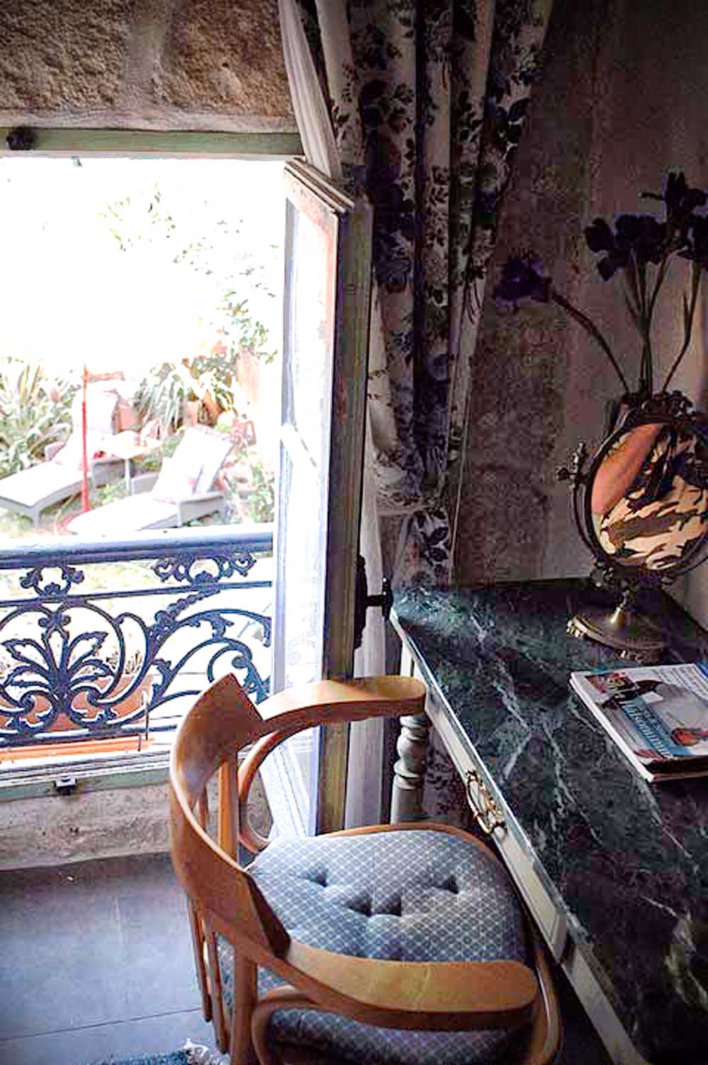 Cette chambre en étage est très protégée et donne sur un magnifique jardin intérieur. Elle est totalement indépendante et très souvent réservée par les habitués des lieux.