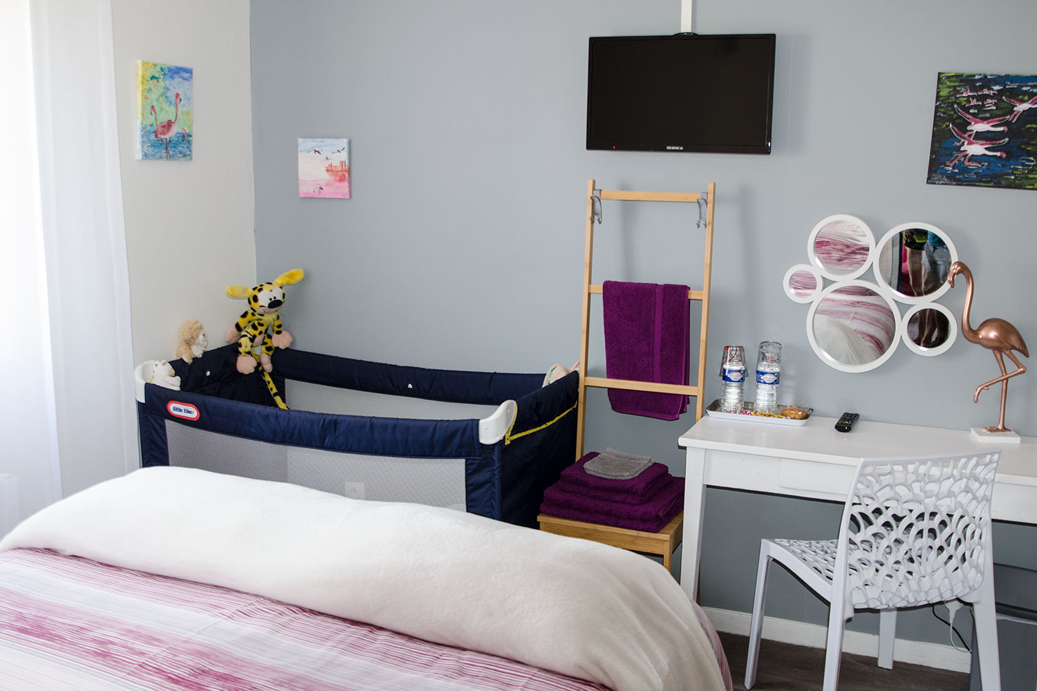 Cette chambre accueille de 1 personne ou un couple (et un bébé!)