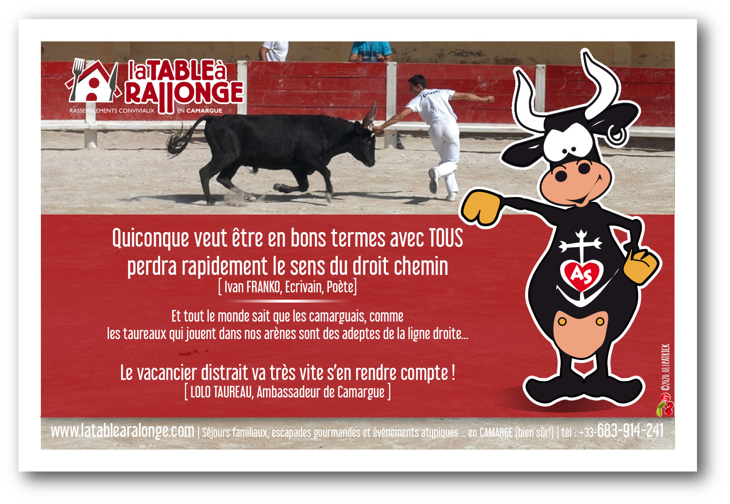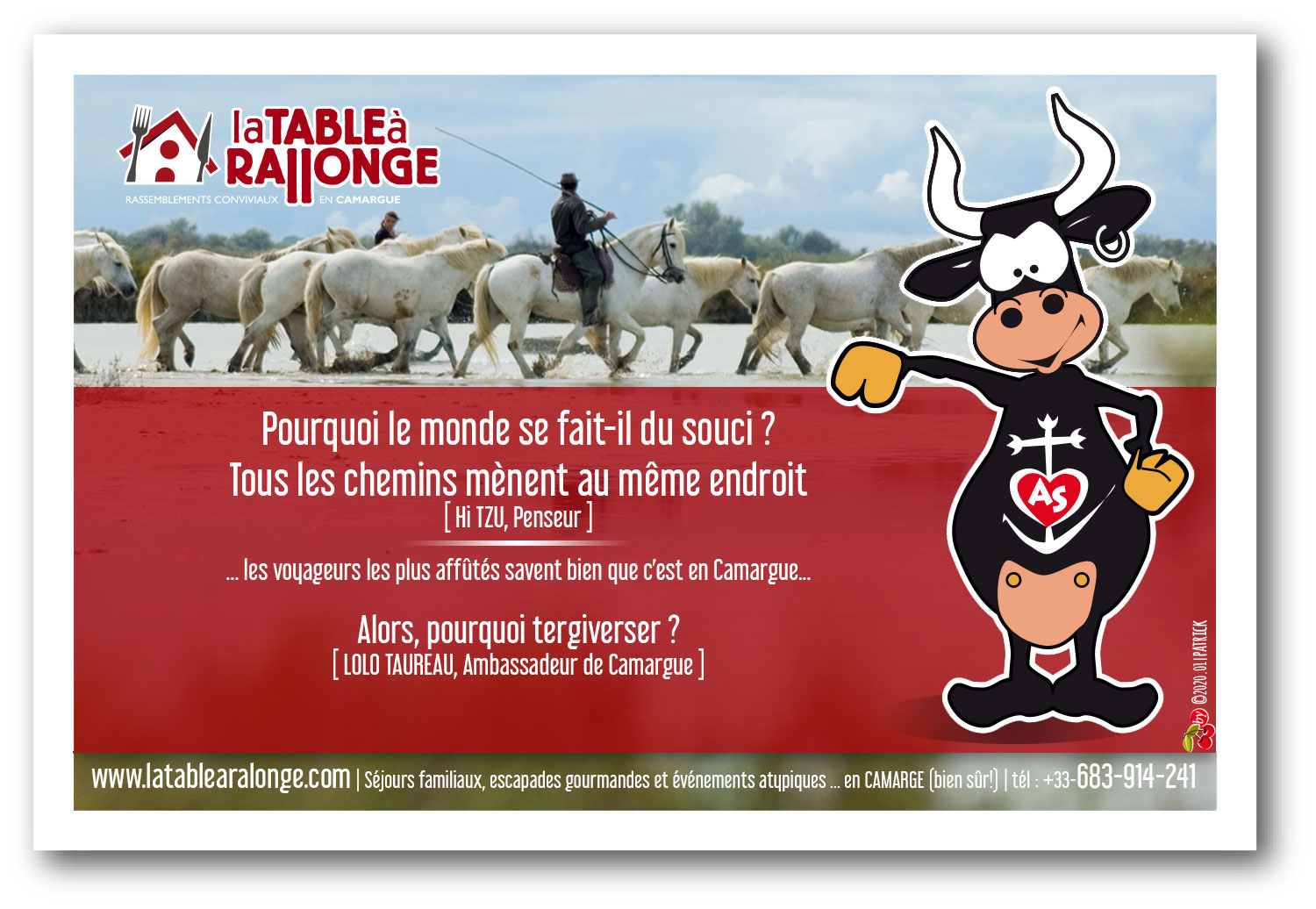 Notre mascotte peut, parfois, nous énerver avec cette manie bizarre de profiter des citations célèbres pour  mettre la Camargue à l'honneur... mais on est souvent d'accord! QUOI FAIRE?