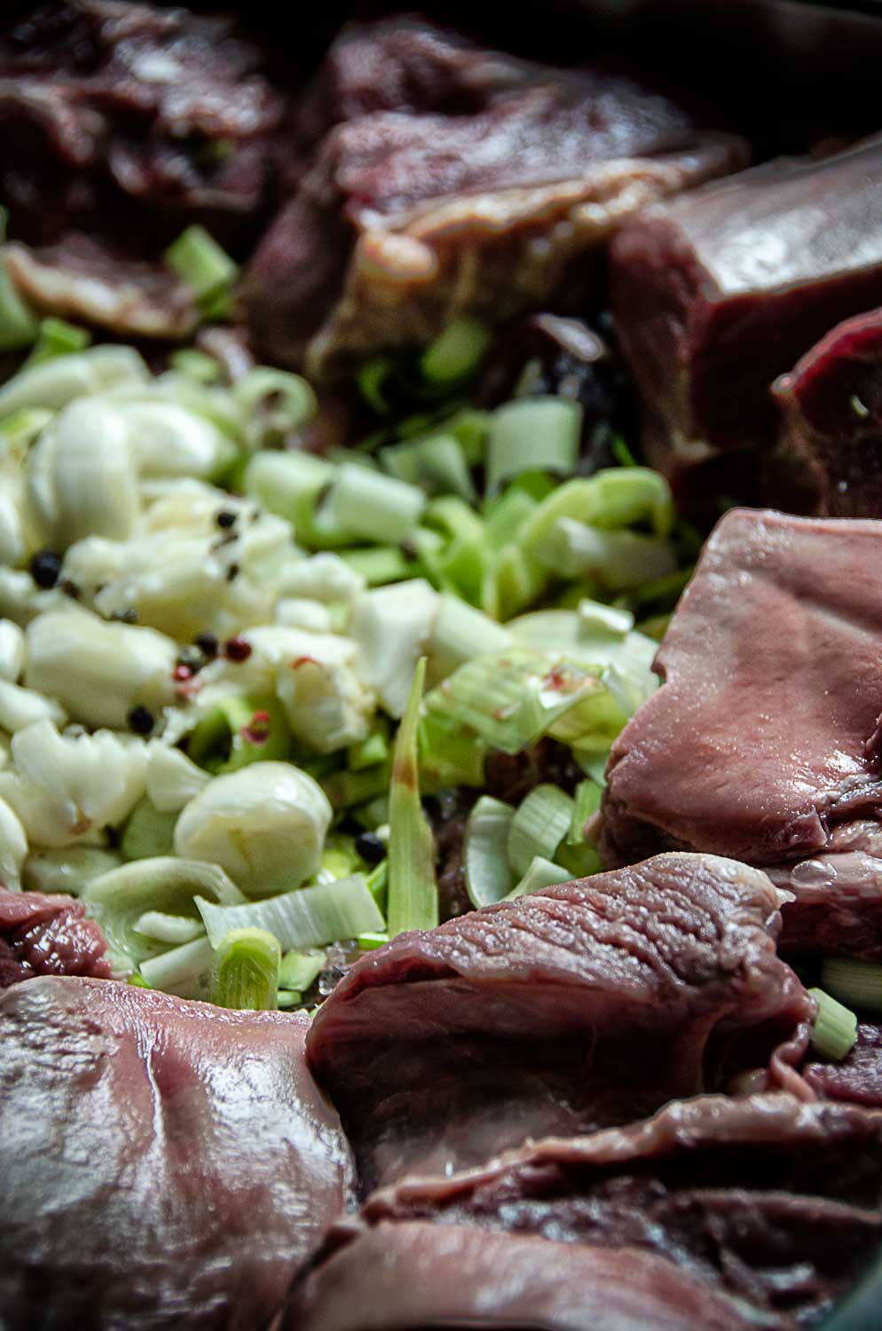 La blanquette de taureau est prête à être enfournée pour un nuit de mijotage à basse température.